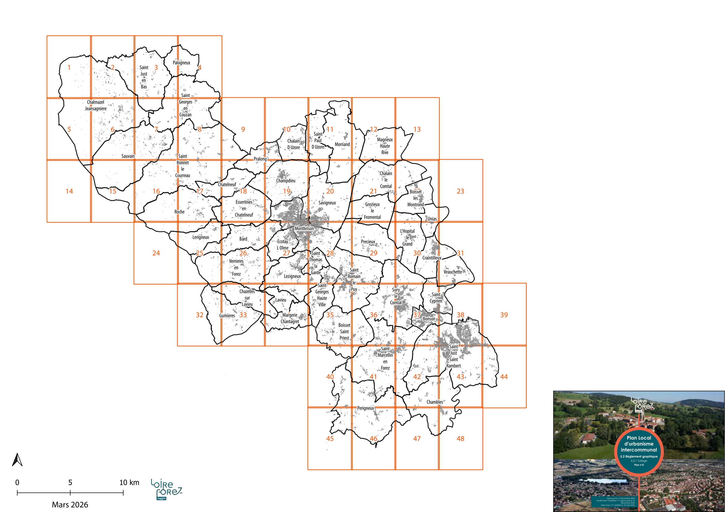 Le PLUi à 45 communes de Loire Forez agglomération a été approuvé au conseil communautaire du 13 décembre 2022. Après plusieurs mois d’application, il est apparu nécessaire de faire évoluer le document d’urbanisme. La modification simplifiée n°1 du PLUi à 45 communes a été approuvée le 12 décembre 2023 par délibération au conseil communautaire de Loire Forez agglomération. Pour donner suite à l’évolution de certaines annexes du PLUi, le document a été mis à jour (n°1) par arrêté du 10 mars 2026.